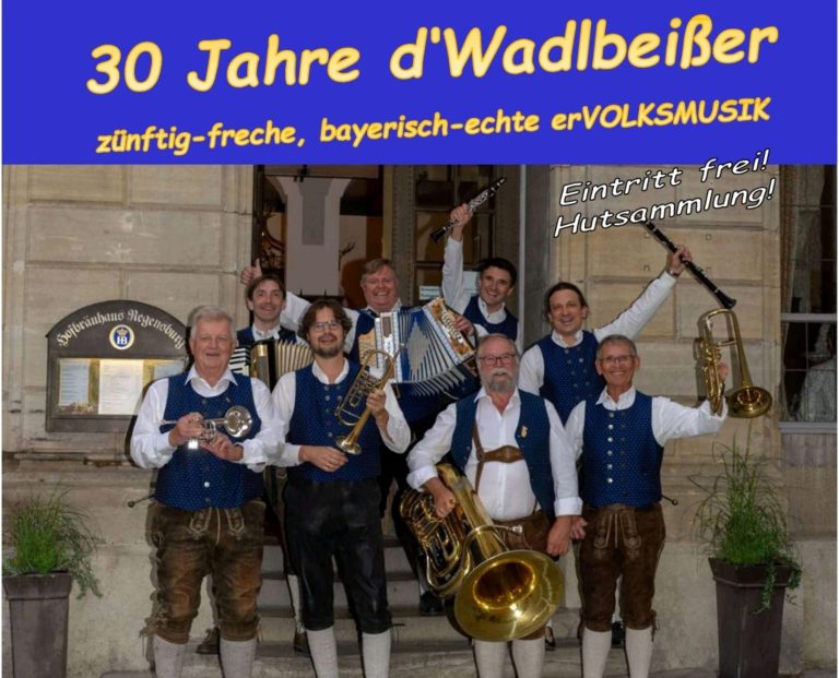 Die Wirtshaus- und Tanzbod'nkapelle „d`Wadlbeißer“, der Heimat- und Kulturverein Bad Abbach e. V. und die Oberpfälzer Volksmusikfreunde e. V. um Renate Wanner wollen, leicht und beschwingt, „30 Jahre d’Wadlbeißer“ als eine ganz besondere Veranstaltung präsentieren. Denn 30 Jahre müssen gefeiert werden. Willkommen dabei sind dem HuK e. V., den Volksmusikfreunden und den Wadlbeißern gerne Feichtigkeitssuchende, vor dem verhungern und verdursten Stehende, Besitzer „roter Zinken“, Freibierg’sichter, Bierbauchbesitzer, versehentlich hierher Verschlagene und zufällig hierher Verirrte, Stammtischschwafler und sonstige normale Gestalten aus der Oberpfalz und drumherum. Zünftig und frech wird von den Wadlbeißern diese „Gästeschar beim Wirt, die von ihnen erwartet wird“, begrüßt.